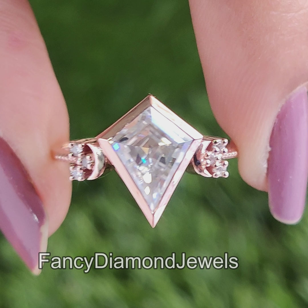 Kite Cut Moissanite Bridal Ring Colorless Moissanite Wedding Ring Bezel Set Moissanite Proposal Ring Milgrain Work Engagement Ring FD51